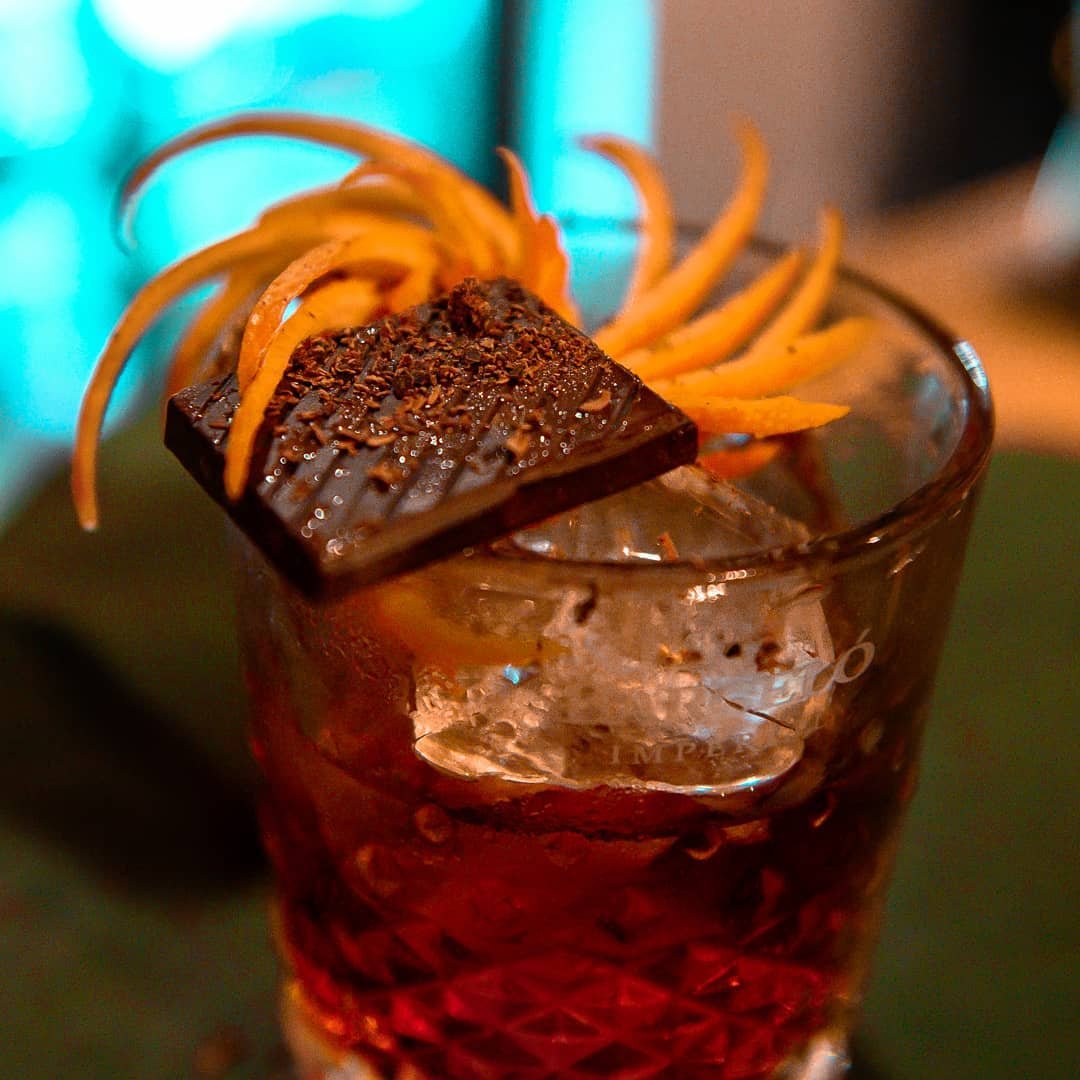 Campari, Red Vermouth, Mezcal and chocolate bitter.